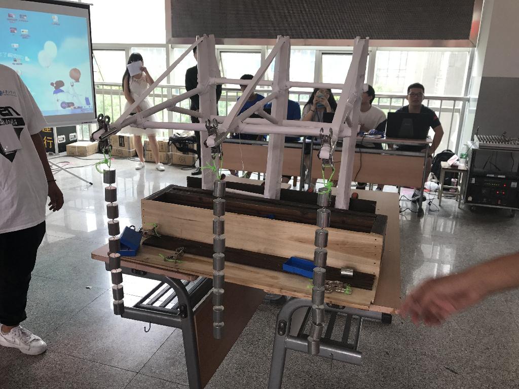 的第21组作品承受住了5.4千克的重量,获得本次比赛冠军,他们将有机会代表我校参加省赛。