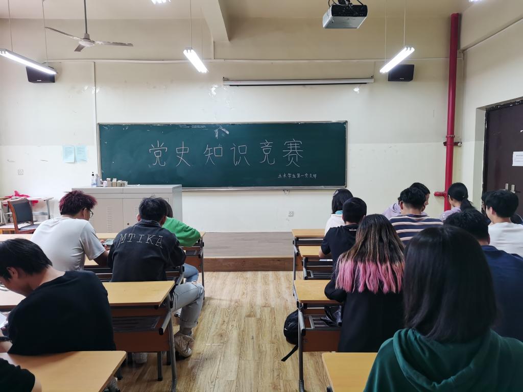 教室里,支部成员结合全国党史知识竞赛集中参与线上答题,通过“以赛促学”的方法推动党史学习教育走深走实,在师生中营造了良好的党史学习氛围。