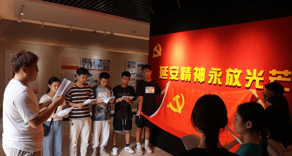 在八路军西安办事处纪念馆,大家依次参观了会议室、机要室、地下室等建筑,认真查看了纪念馆内陈列的文件、证章、电台、书刊、手稿、照片等革命文物,聆听着讲解员讲述革命往事,齐声朗诵红色经典《党旗颂》,开展党史故事分享活动,通过追寻革命前辈的足迹,重走信仰之路,传承红色记忆,铭记光辉历史,坚定信党、爱党、跟党走的信心和决心。面向鲜红的党旗,支部全体党员重温了入党誓词,用拳头捏出庄严承诺,再一次体验入党初心。