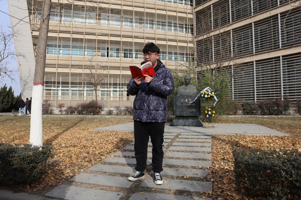 吴运铎雕像前,师生党员在认真学习诵读红色经典《把一切献给党》,走近兵工事业开拓者吴运铎的革命一生。“一个人的生命是短促的,而我们的事业却无限长久。个人尽可以遭到许多不幸、许多痛苦,但是只要我的劳动融合在集体的胜利里,那幸福也就有我的一份。只要我活着一天,我一定为党为人民工作一天。”12月31日,比分网站