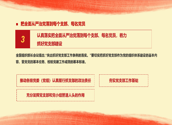 他从坚持用习近平新时代中国特色社会主义思想武装全党、扩大基层党的组织覆盖和工作覆盖、将全面从严治党落到每名党员和将抓落实作为开展工作的主要方式等四个方面讲授党课。