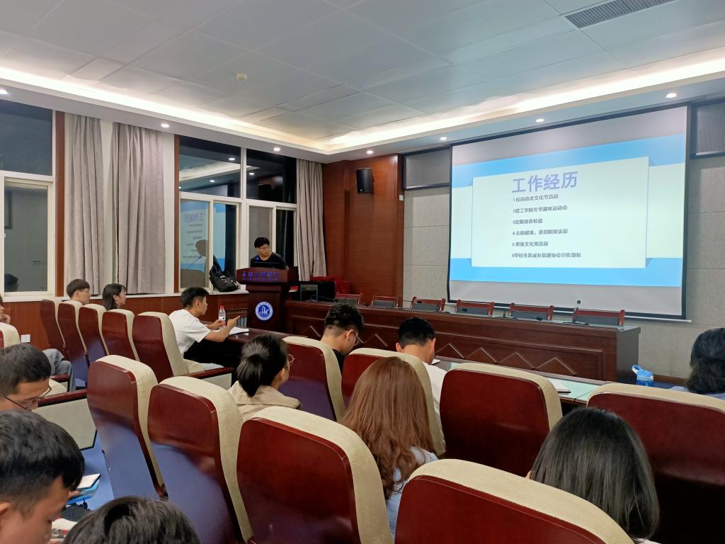 团学组织部长级和主席团成员换届竞选大会。部长级竞选会议由团委副书记陈新主持,各学生组织原主席团部分成员担任评委,所有部长候选人参加了竞选大会。