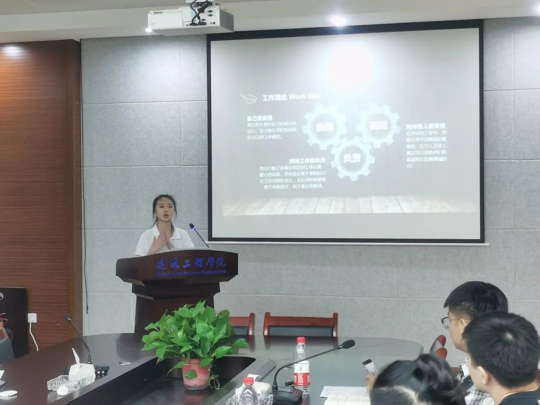 本次竞选流程由竞选人自我陈述、评委提问、评委打分三个环节组成。竞选人依次上台发表竞选感言,通过PPT演示分享了自己加入团学组织以来的丰富工作经历及工作中的感悟收获,同时展示了个人工作优势,表达了竞选职位成功的坚定决心,并对竞选成功后的工作进行了展望规划。评委们就竞选者自我陈述中存在的问题作出点评,和竞选者们讨论了如何解决应对今后团学工作中可能会遇到的问题,并对参与竞选的同学做出肯定与鼓励。