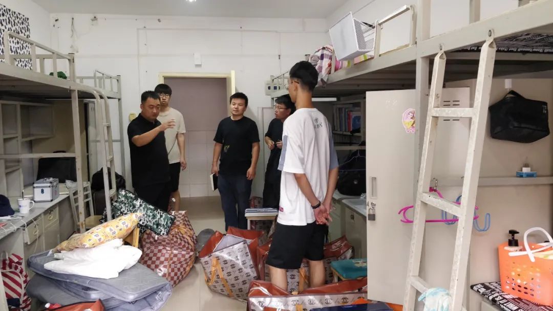 返校学子,了解宿舍搬迁工作开展情况。在宿舍,翟老师与返校同学亲切交谈,了解同学们的返校方式及安全防护措施,并询问了大家的假期生活与学习情况。疫情防控常态化背景下,同学们的安全返校是后续各项工作开展的重要前提,要确保返校后师生的安全健康,就必须严格确保各项防控流程环节的精准实施,深入一线走访宿舍便是其中关键一环。走访过程中,翟老师一行集中解答了同学们关于宿舍搬迁方面存在的具体问题并进行详细记录,嘱咐大家及时检查新宿舍存在的安全隐患,做到早检查、早上报、早排除,尽快适应新环境,并及时调整学习状态,增加个人知识储备,积极面对疫情带来的挑战,转变就业观念。同时,翟老师叮嘱同学们,要牢固树立安全责任意识,严格遵守学校疫情防控各项规章制度,加强身体锻炼,将宿舍卫生创建工作长期坚持,营造良好的学习生活环境。
