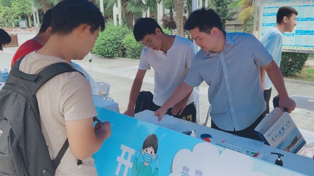 领导多次带队前往西大门内学生返校接待点检查指导学生返校工作,了解学生返校动态情况,慰问值班工作人员,希望大家严格按照工作方案,落实各项返校工作细节,保障自身和学生健康,确保返校工作顺利进行。在返校生完成身份验审、体温检测、行李消杀、信息核对等流程后,辅导员老师们与可爱的志愿者们及时向返校学生派发体温计等防疫物品,叮嘱大家遵守学校疫情防控期间的管理要求,提高自我防护意识,尽快调整好状态,投入到考试复习和新学期学习中。
