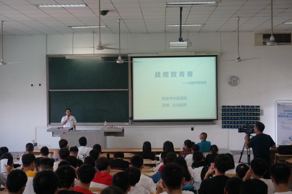 联合校医院举办“健康中国行,战‘痘’致青春”公益科普讲座,邀请了西安市中医医院皮肤科主治医师吴卿博士、副主任医师马晓红专家团队,在教1-402为我校学生讲授战“痘”方法,传授科学治疗和预防痤疮知识。比分网站