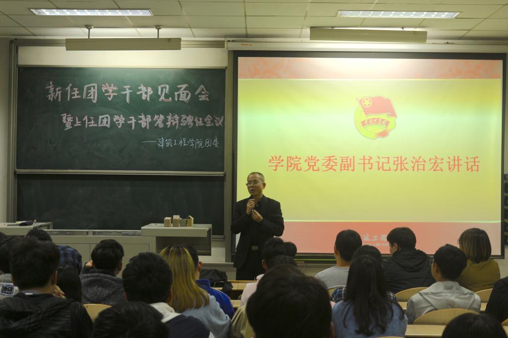 团学工作辛勤付出的感谢。随后,安春雨宣读了新任团学干部名单,新任团委副书记陈新和学生会主席崔江伟分别上台作了表态发言,大家畅叙对团学组织未来工作的展望和规划。最后,张治宏在讲话中对上届学生干部的付出表示感谢,肯定了大家任期内所取得的成绩,并对新任学生干部的当选表示祝贺,给大家提出了几点希望:一是希望学生干部能有大局意识和服务意识;二是希望学生干部处理好集体与个人、学习与工作之间的关系,坚持在学习中工作,在工作中学习;三是希望大家能够继续增强集体荣誉感和凝聚力,不断创造建工比分网站