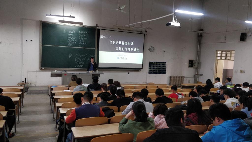 2017级在教1-205开展“扫黑除恶”专项斗争宣传活动,本次活动由辅导员刘冬主持开展,辅导员徐慧子及2017级全体学生参加了本次活动。