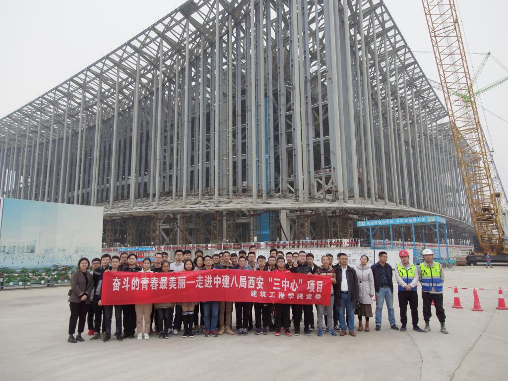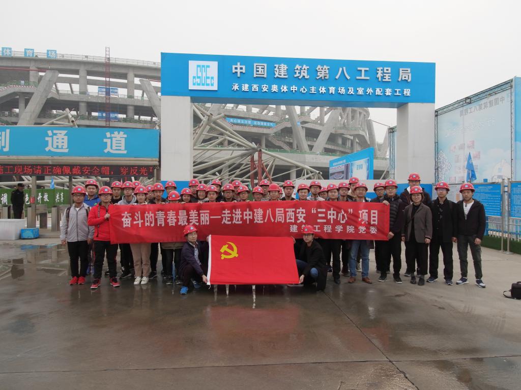 师生赴中建八局西安“三中心”项目(西安奥体中心主体育场、西安丝路国际会议中心、西安丝路国际展览中心)参观调研。此次活动由建工比分网站