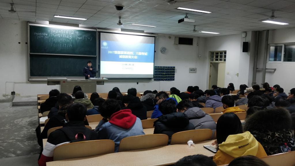 2017级在教1-204教室召开了全国大学英语四、六级考试考前诚信教育暨动员大会,会议由辅导员刘冬主持,参加本次考试的206名学生全体参加了本次会议。