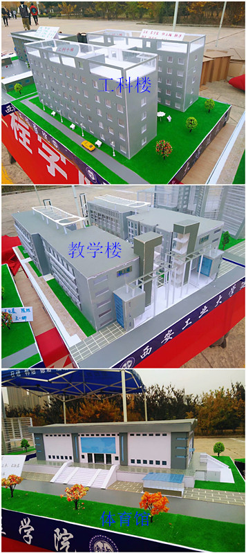 此次展览的建筑模型为我校建筑模型缩影,涵盖了图书馆、体育馆、教学楼、工科楼、宿舍楼、食堂、行政楼七个主体建筑模型,该模型是建工比分网站