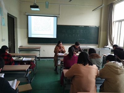 党委副书记张艳霞为大家做了十九大报告学习专题辅导并谈了自己的体会。她从教育工作谈起,结合自己身边的实例,从不同角度对十九大报告的进行了梳理,为大家深刻地解读了十九大报告的主要内容,并谈了自身的理解和认识,使大家受益匪浅。同时,张书记对所有党员提出了三点要求:一是努力积极学习十九大精神,思想方面努力向党组织靠拢;二是努力做好自身,既是为人民服务,时刻保持自己身为党员的先进性和带头作用,影响身边人;三是学习十九大精神应从小事做起,从生活中的一点一滴做起,讲礼貌,远离手机等。我们生在好的时代,就该好好珍惜和利用。