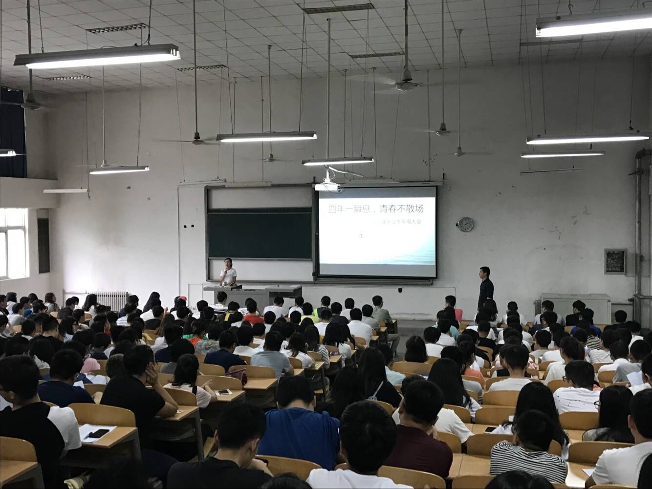 在教3-105召开2017届毕业生年级大会。2017级毕业生辅导员韩霄、张亲脑老师及毕业班全体学生参加了此次会议。