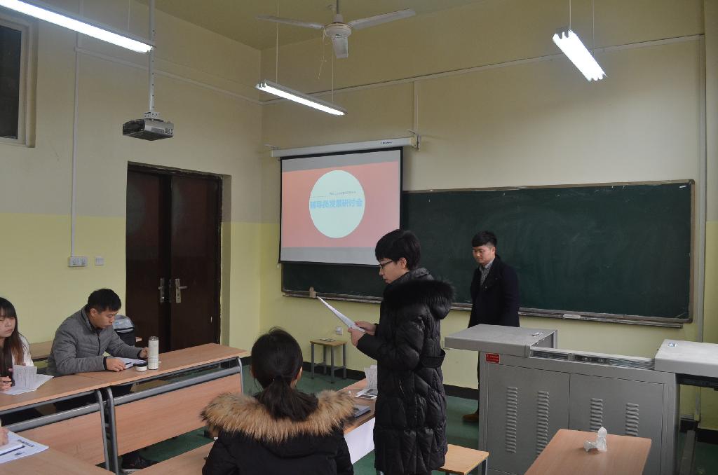 会议首先进行了学工干部的工作情况和个人发展规划研讨部分。各年级辅导员就本年度工作开展和个人发展情况以PPT形式进行了全面汇报,交流与分享了各自经验和做法。随后,辅导员何鹏程、韩霄分别就做学籍处理学生工作向大家做以总结汇报,与会的其他辅导员根据各自年级实际工作情况做了相应补充。何鹏程针对学籍处理学生的具体情况进行了较为详实的说明,以具体数据进行说明,并且从主客观两个方面具体分析了造成学籍处理后果的原因,并提出了相对应的建议与对策。韩霄从学籍处理学生的心理入手,细致入微地分析了影响学生学籍处理的各种心理问题,并从实行典型教育克服自卑心理等几个方面提出了预防并及时解决心理问题的策略。