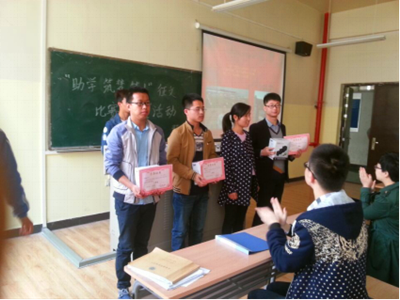 所有特困生参加了颁奖仪式。颁奖仪式上,一等奖获得者2012级郭西平代表所有参加此次活动的学生发言,他的一番发言让在座的所有贫困生深有感触,鼓舞着大家在人生的道路上不断的攀登高峰。活动最后在老师的总结发言中完美落幕。