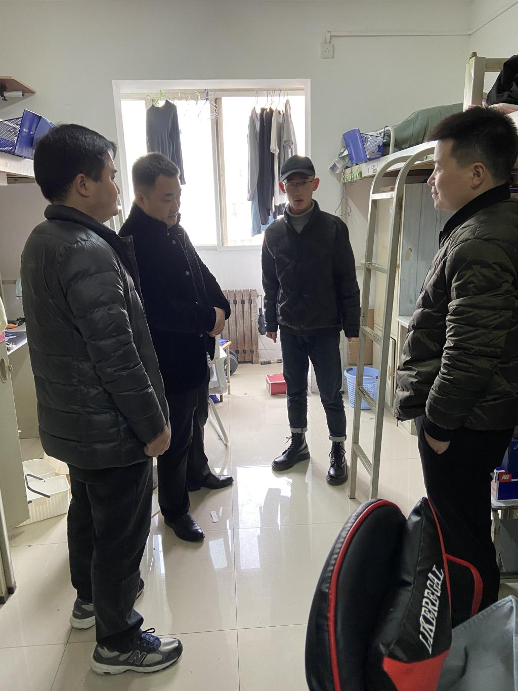 党委副书记翟超与辅导员走访了本科生宿舍,详细了解学生情况,开展宿舍安全检查,加强对学生的安全教育。