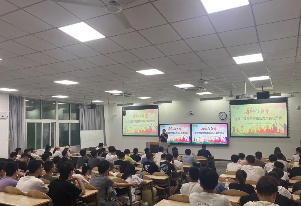 团学组织在教2-101召开“健康活力大赛”训练动员会,会后同学们进入日常训练状态,大家不畏炎热,刻苦训练,团学工作人员全程为同学们做后勤保障工作,最终随着动感的音乐响起,同学们在动作的挥洒与跳跃之间呈现出无限的青春与激情,彰显了大学生的活力。