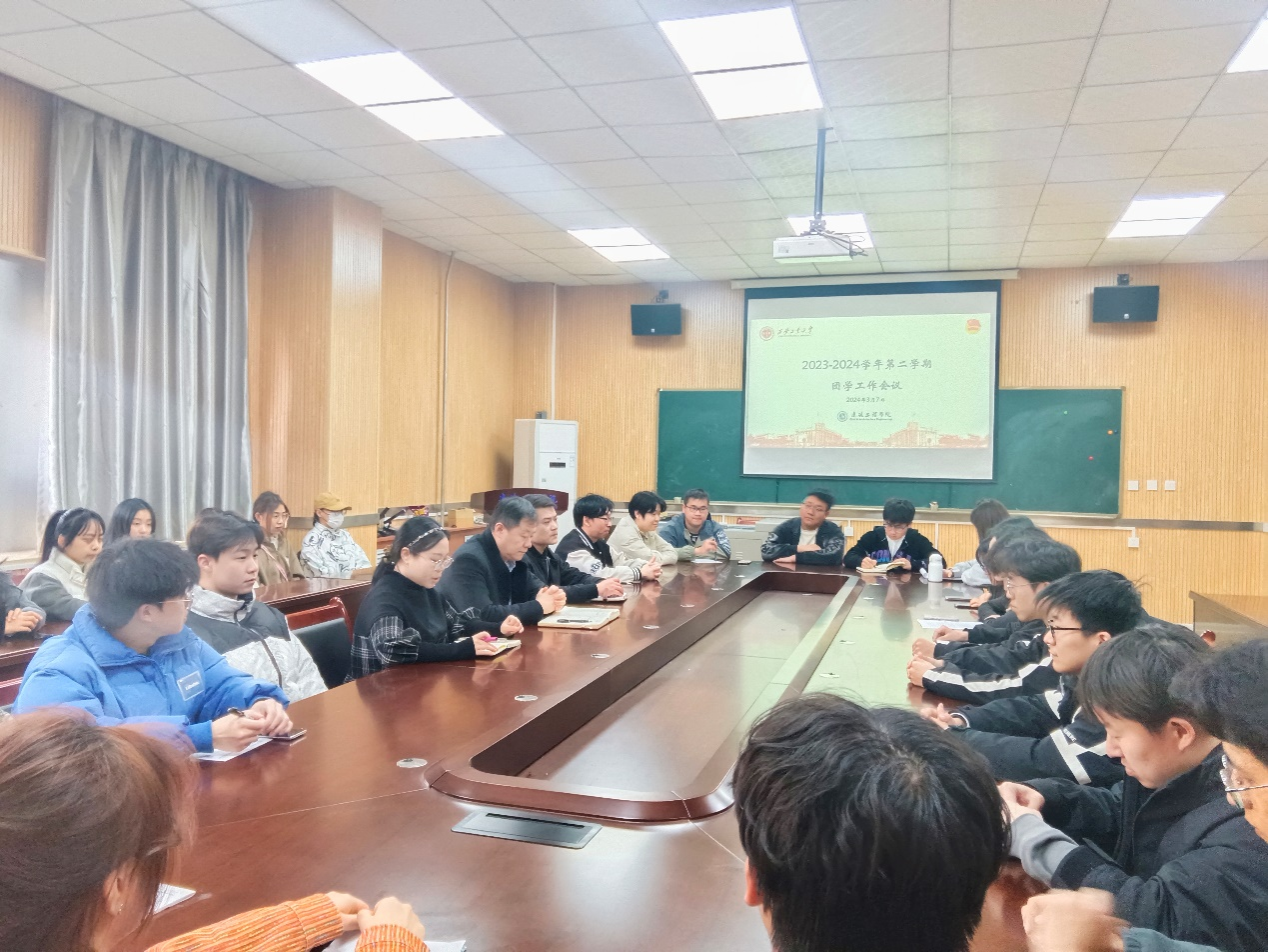 随后,段强老师向团学骨干们给予了宝贵的建议,启发性地指出团学干部要加强理论学习,提高思想觉悟,在实际工作中提升综合素质,进而发挥榜样作用。晁思思老师对本学期重点工作进行了规划部署,着重强调团学干部要做到事事有回应,件件有着落,勤于学习和总结,确保各项工作有序推进并高质量完成。最后,贾建利老师指出,团学干部是学生工作的重要力量,要以身作则,锤炼品格;统筹协调,尽职尽责;互相帮助,共同进步,实干求干,创新工作。