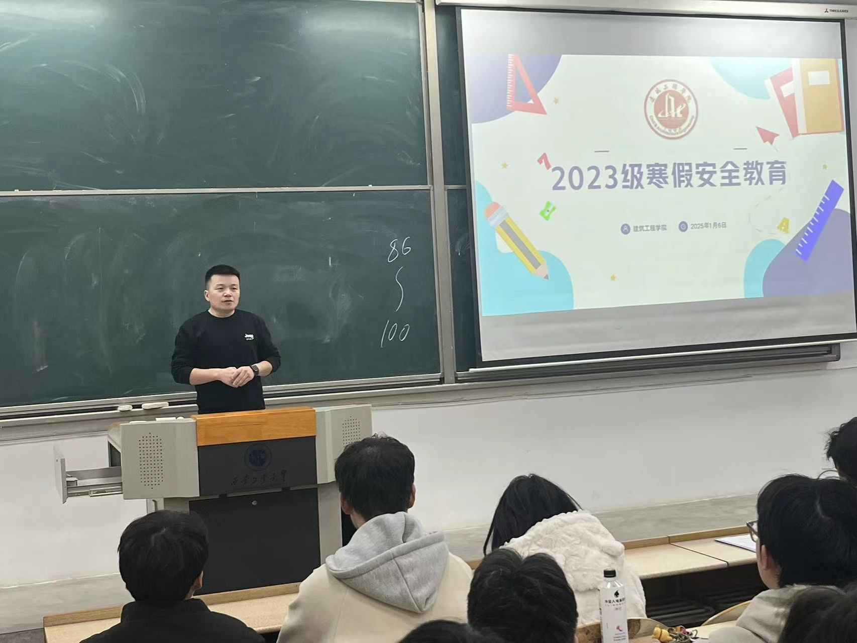会上,刘冬围绕交通安全、网络安全、消防安全、人身财产安全等方面,结合真实案例详细阐述各类安全问题的危害与防范方法。此外,他希望同学们能合理安排假期时间,避免沉迷网络,积极参与家务提升个人技能,对大学学习生活及时开展总结与规划,做好寒假学习充电,全力以赴迎接新学期。针对寒假离校,他着重强调安全事项,提醒大家做好宿舍内务整理,做到人走电断,确保宿舍假期安全,到家后第一时间报备平安。最后,刘冬再次强调诚信重要性,希望大家守好最后一道防线,顺利完成最后一科考试。