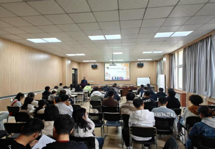 副院长郭庆军教授、辅导员翟逸玥老师,以及研三已就业学生代表,与研一、研二近百名研究生共话职场未来。