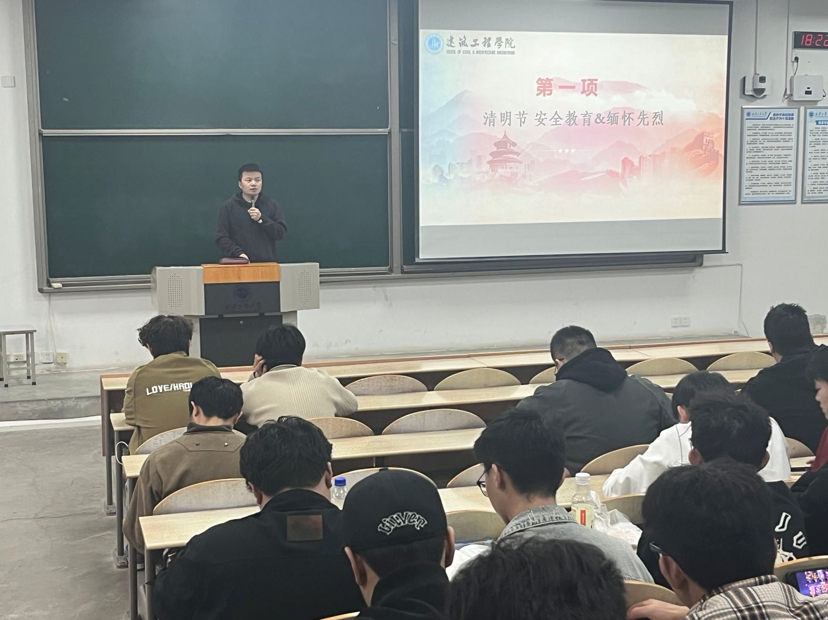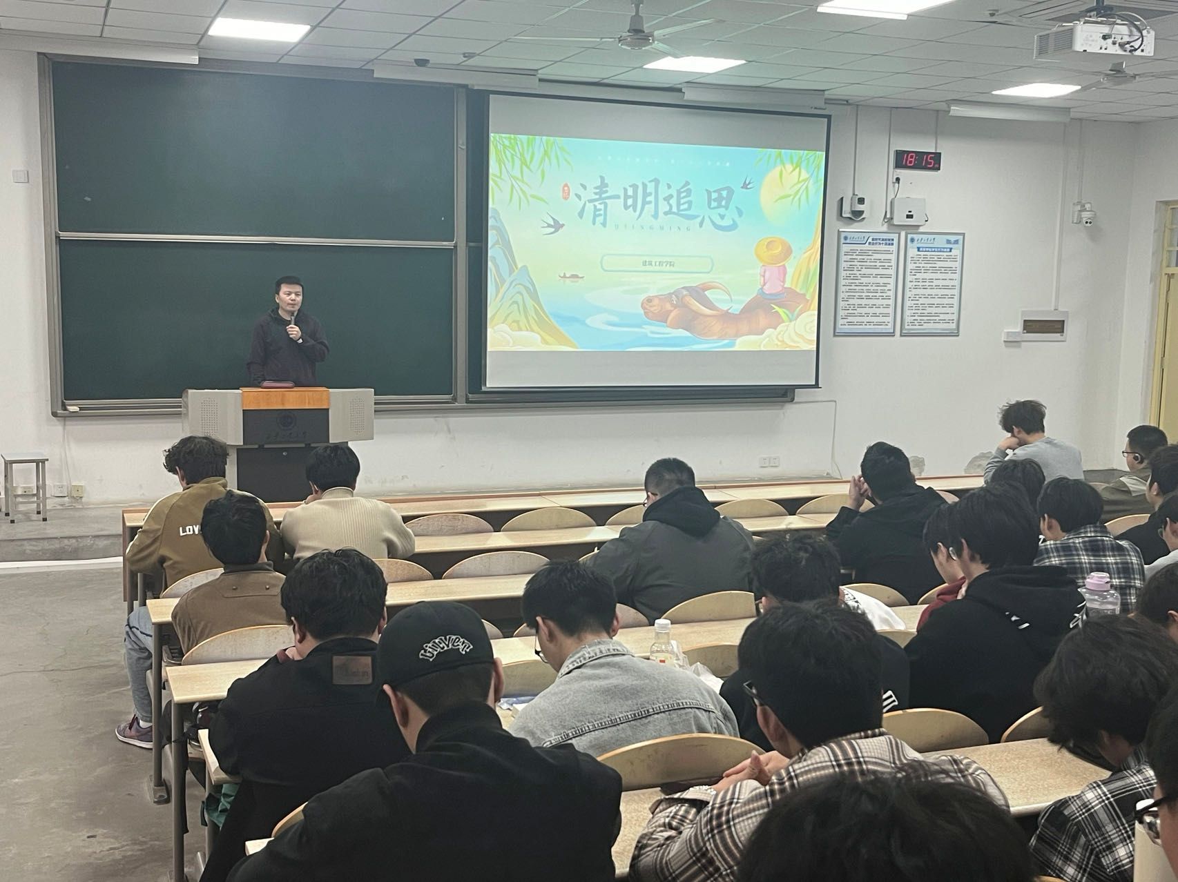 2023级在教1-103教室开展“清明追思祭先烈,红色基因永传承”主题年级会议,旨在希望学生对先烈有崇高的敬意与追思,传承红色基因,凝聚奋进力量。辅导员刘冬主持,年级全体学生参与。