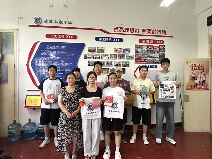 在轻松愉快的氛围中,老师为参赛运动员们分发了定制纪念品,同学们脸上洋溢着喜悦的笑容,彼此分享着比赛中的精彩瞬间和难忘经历。现场热烈的气氛和欢笑声充分展现了建工学子团结友爱、积极向上的精神风貌。