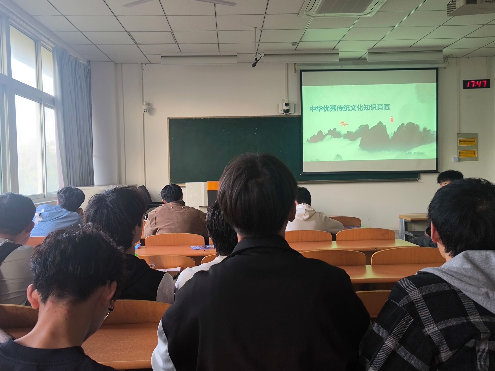 竞赛内容广泛涉猎古典诗词、传统礼仪、历史典故等。虽是在日常学习的教室举行,但现场却别有一番专注而热烈的氛围。没有正式的赛台,同学们以座位为阵营,在“课堂提问”式的必答环节中沉着思考、稳健应答;在抢答环节,则踊跃举手、争先恐后,展现了丰厚的知识积累与良好的团队精神。台下“观战”的同学也全神贯注,跟随赛题一同思考,并为每一次精彩回答报以由衷而热烈的掌声。