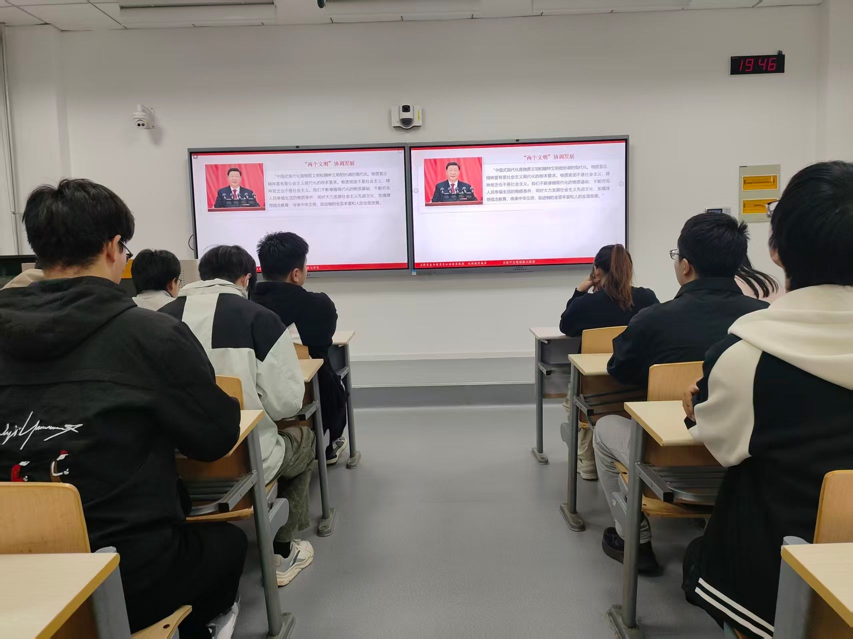 在教室组织多场集中学习会,同步鼓励学生利用课余时间在宿舍通过电子设备观看学习内容,确保全员参与、学习全覆盖;过程中,学生们认真观看、记录要点,围绕文化思想的时代价值展开了自发交流。