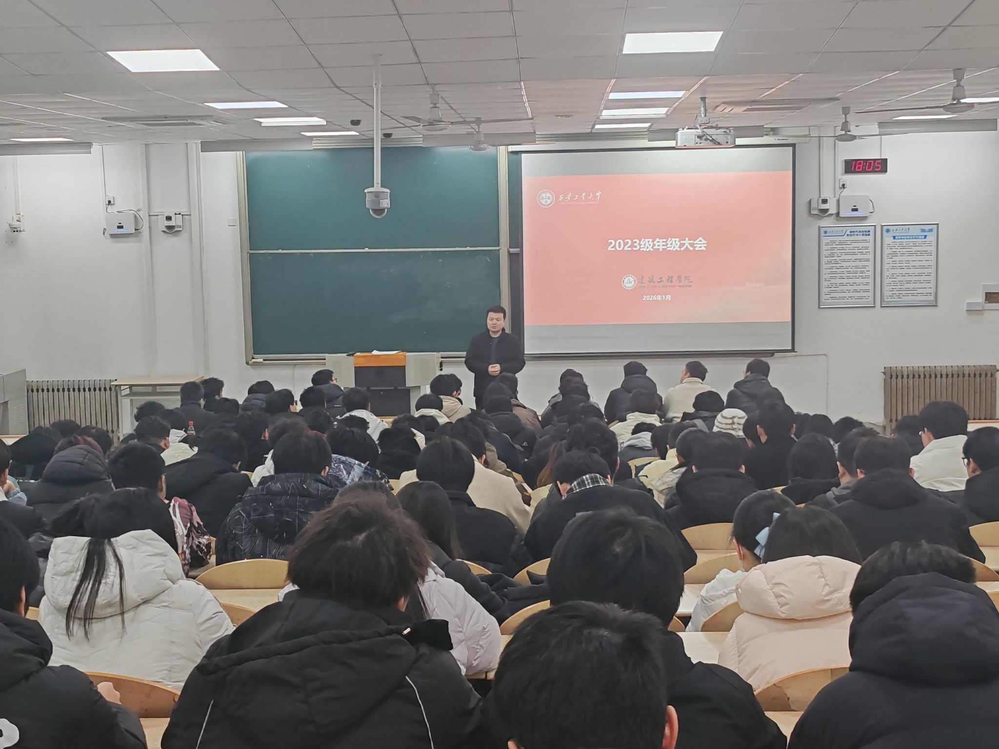 在教1-101召开2023级年级大会,本次大会由刘冬主持,2023级学生参会。旨在切实做好学期末总结工作,强化学生寒假安全意识,为学生度过平安、充实的假期筑牢基础,同时明确新学期学习发展方向。