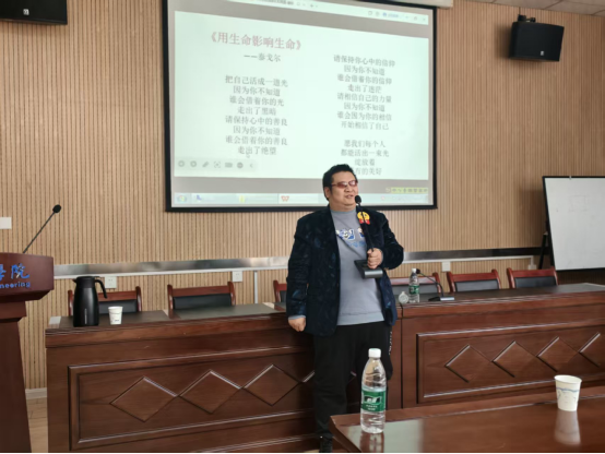 活动特别邀请视障人士杨子宣结合自身真实经历,为同学们细致讲解了帮助视障人群的三大核心要点,让大家明白“有效帮扶”比单纯的“善意行动”更重要,也为同学们未来的公益实践指明了具体方向。同时,作为盲人艺术团团长,杨子宣给在场师生带来了一场触动心灵的现场演唱,迎来大家雷鸣般的掌声。