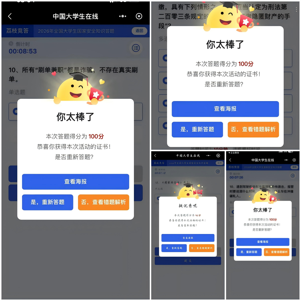 同步组织开展国家安全知识答题活动。同学们积极参与,通过线上查阅资料、线下交流探讨等方式系统梳理国家安全知识体系,深入学习总体国家安全观核心要义与法律法规要点,充分展现出建工青年积极学习国家安全知识、主动提升安全素养的良好精神风貌。