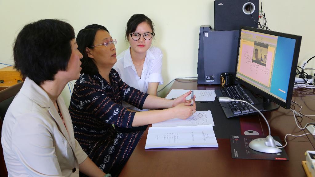 工3-215办公室里进行着一场特殊的答辩,五位答辩教师整齐地坐在一台电脑前,人机交互的另一端是一名特殊的学生——开学至今因病住院无法返校参加中期答辩的一名品学兼优的大四学生。