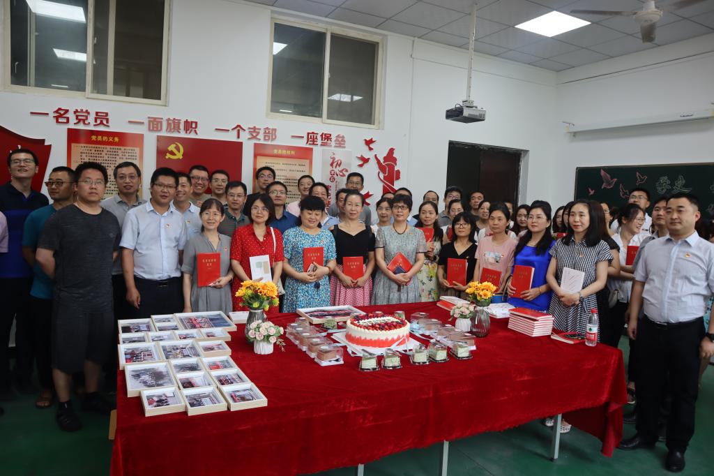 领导在党员活动室为师生党员赠送学习书籍与最美家庭合影照片,全体党员一起分享了生日蛋糕。