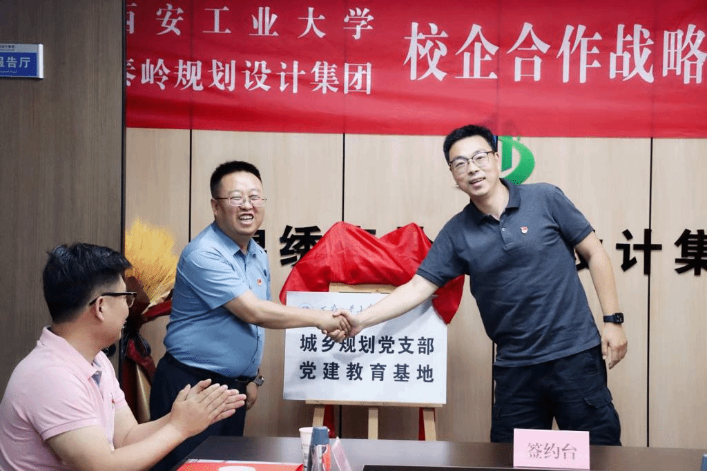 副院长郭庆军,城乡规划系系主任杨大伟,规划学科团队负责人冯小杰;锦绣秦岭规划设计集团董事长兼党支部书记秦岭,空间规划研究院院长胡秉伸等出席签约仪式。郭庆军副院长与秦岭董事长代表双方签约。