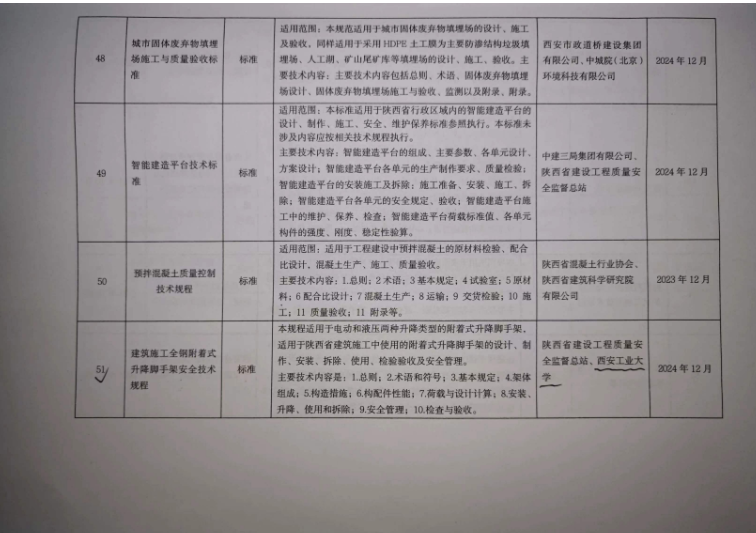 曾凡奎博士团队起草编制,适用于电动和液压两种升降两种类型的附着升降式脚手架,指导陕西省建筑施工用附着式脚手架的设计、制作、安装、拆除、使用、检验验收及安全管理。《规程》的编制将有助于进一步强化我省建筑施工全钢附着式升降脚手架的安全管理,推动绿色施工管理的发展,促进施工管理标准化、规范化、精益化,减少安全隐患,提高工程质量。