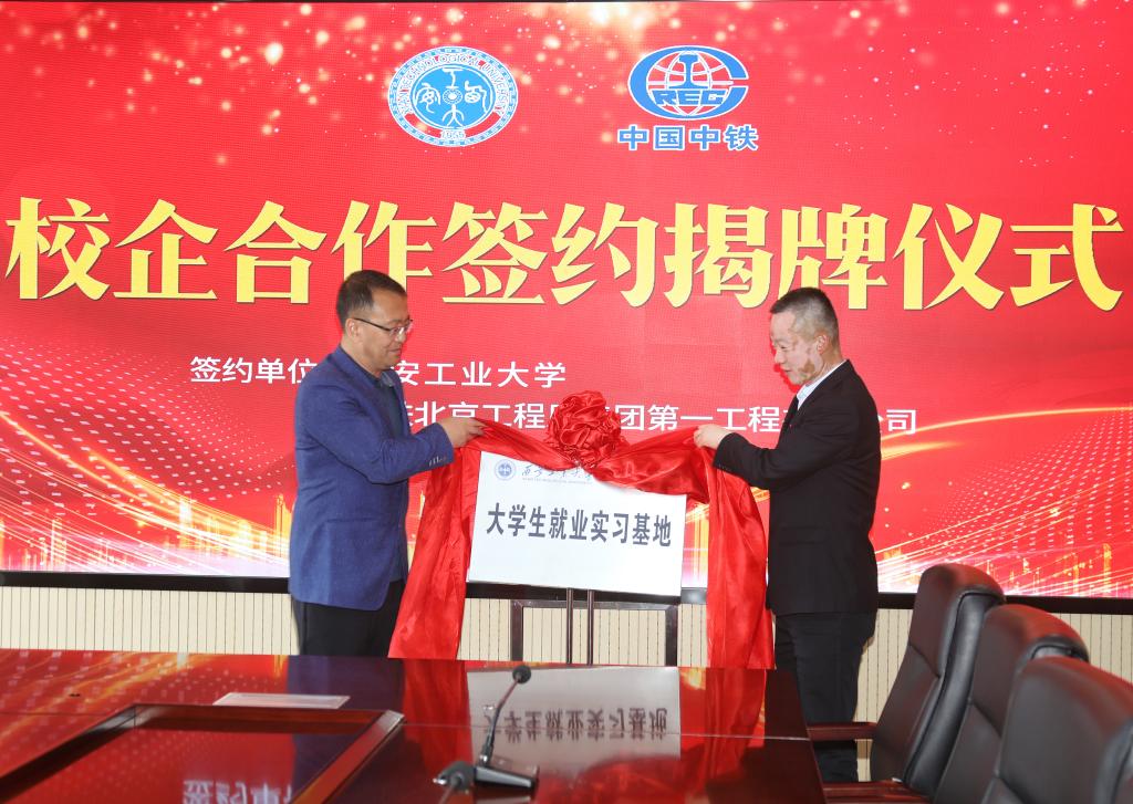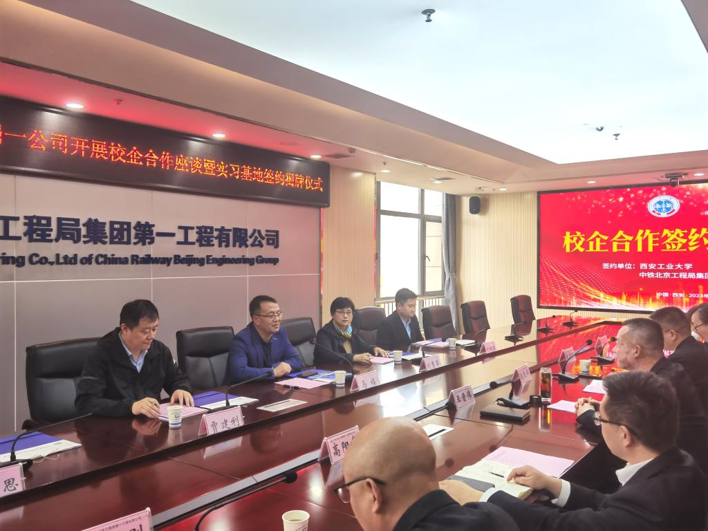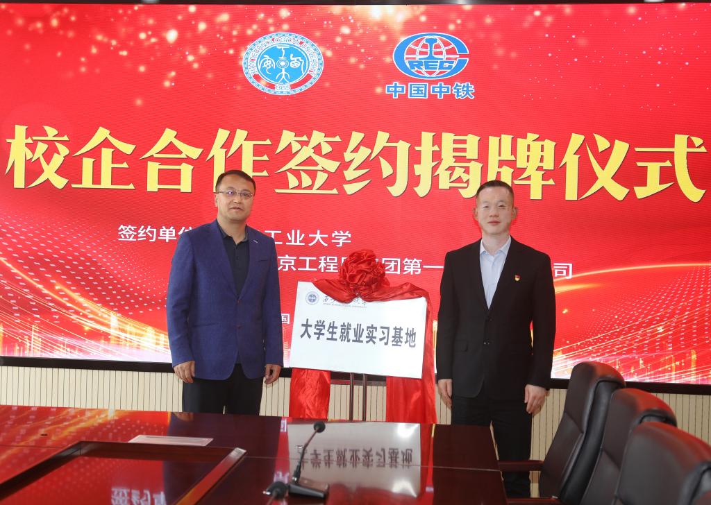 党委书记刘慧萍、党委副书记贾建利、辅导员组长何鹏程、辅导员晁思思等一行到中铁北京工程局一公司开展调研交流暨校企合作实习基地签约揭牌仪式。
