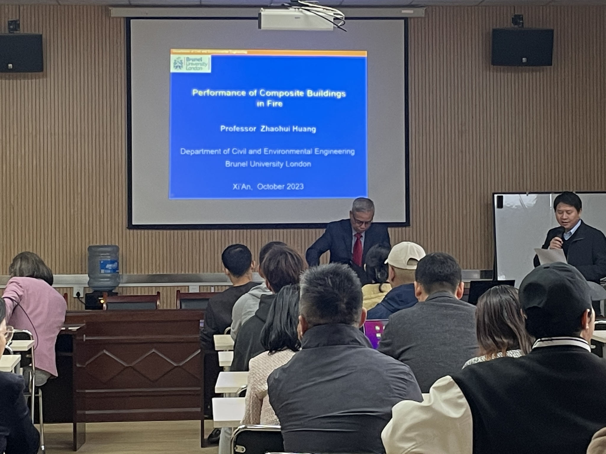 邀请,10月11日,英国布鲁纳尔大学黄昭辉教授在教4-201举行题为“Performance of Composite Buildings in Fire”的学术报告,院长黄华主持,党委书记刘慧萍、10余名青年教师及部分研究生参加。