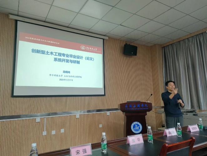 华中科技大学华中卓越学者龙晓鸿教授作了《创新型土木工程专业毕业设计(论文)系统开发与研制》的报告。