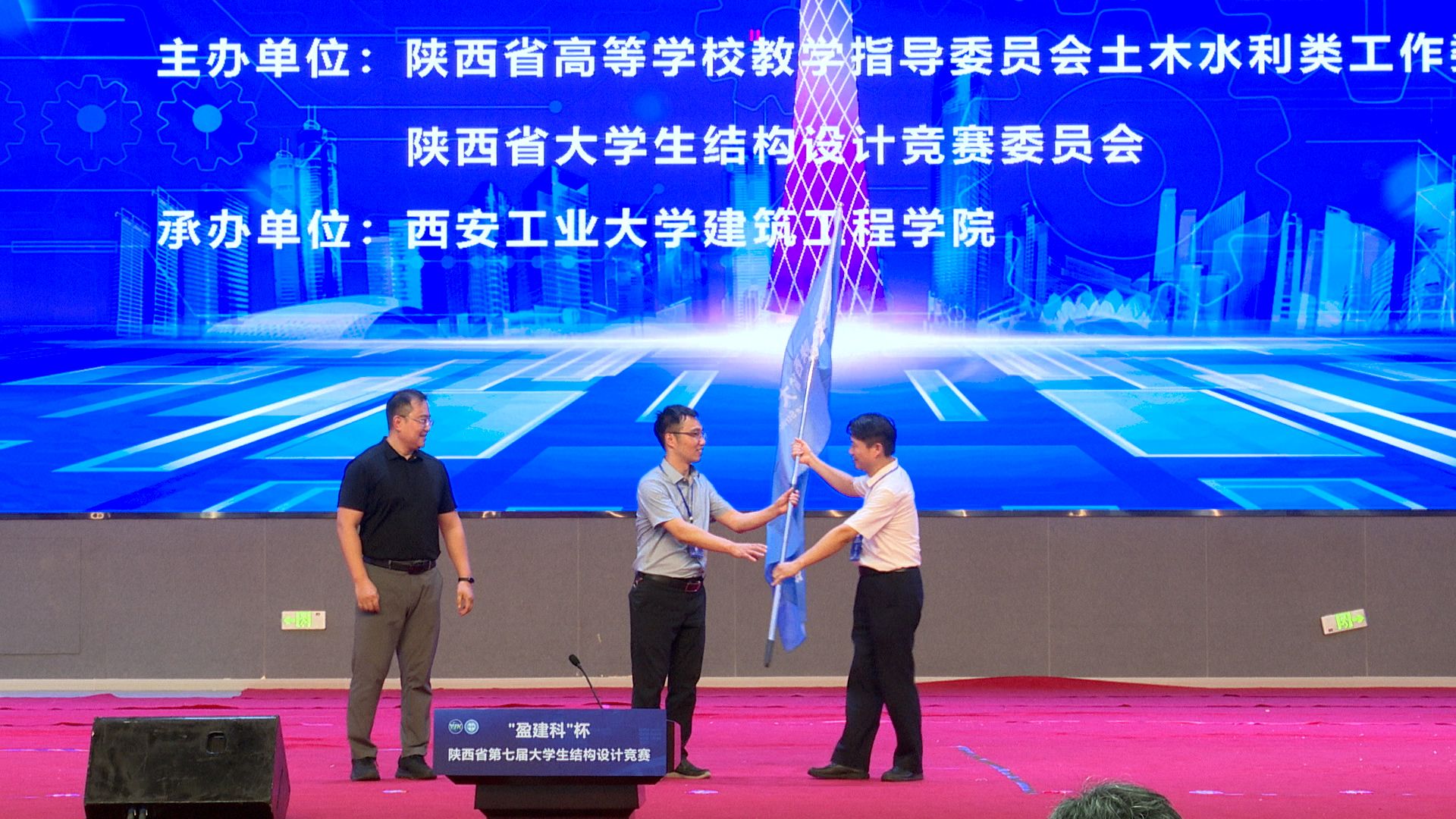 活动中还举行了全国大学生结构设计竞赛陕西省分区赛会旗交接仪式,西安工业大学将会旗移交给下一届赛事承办方西京比分网站