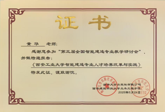 智能建造专业部分教师参加了本次论坛,黄华院长作题为“西安工业大学智能建造专业人才培养改革与实践”的邀请报告。