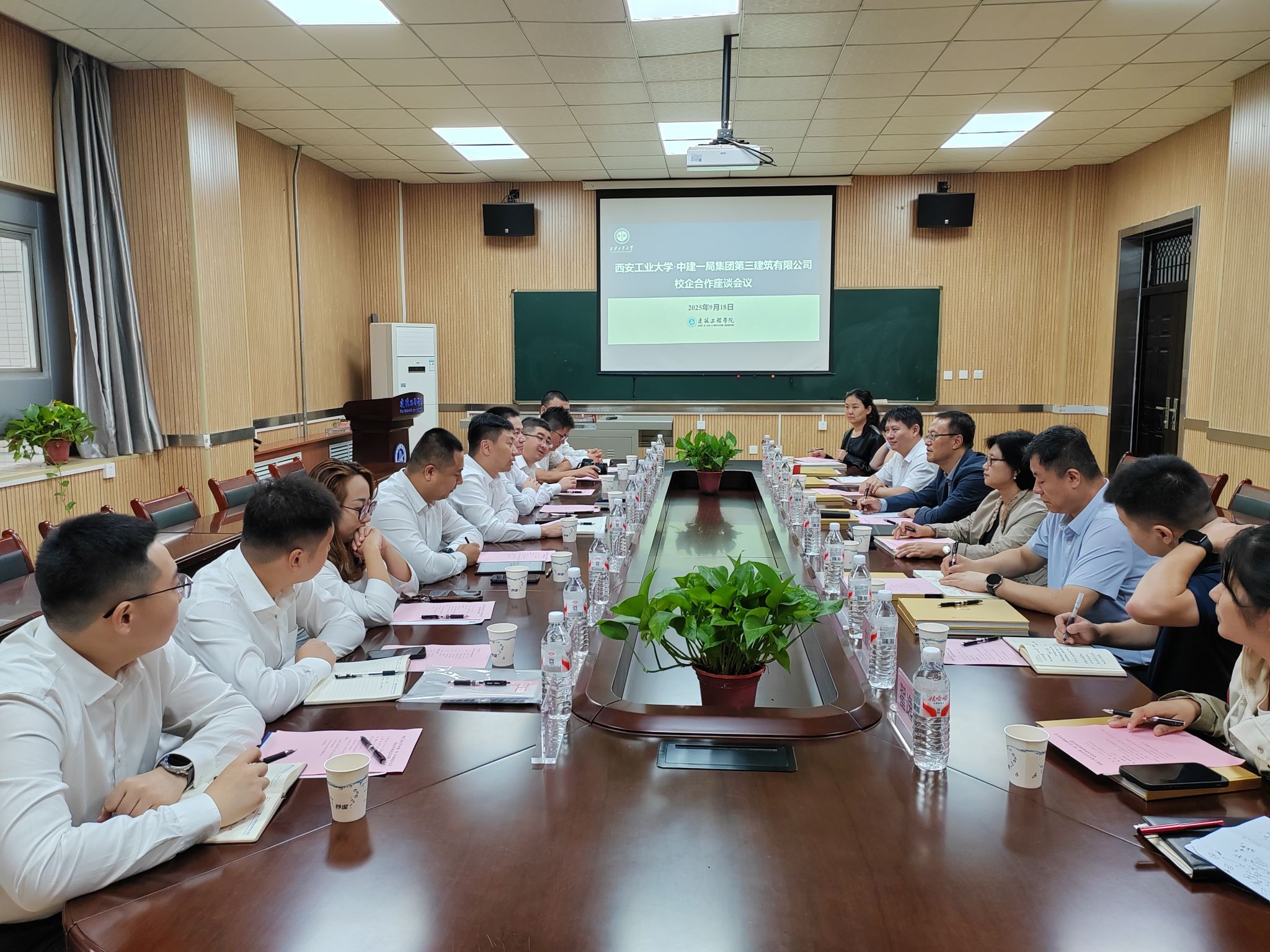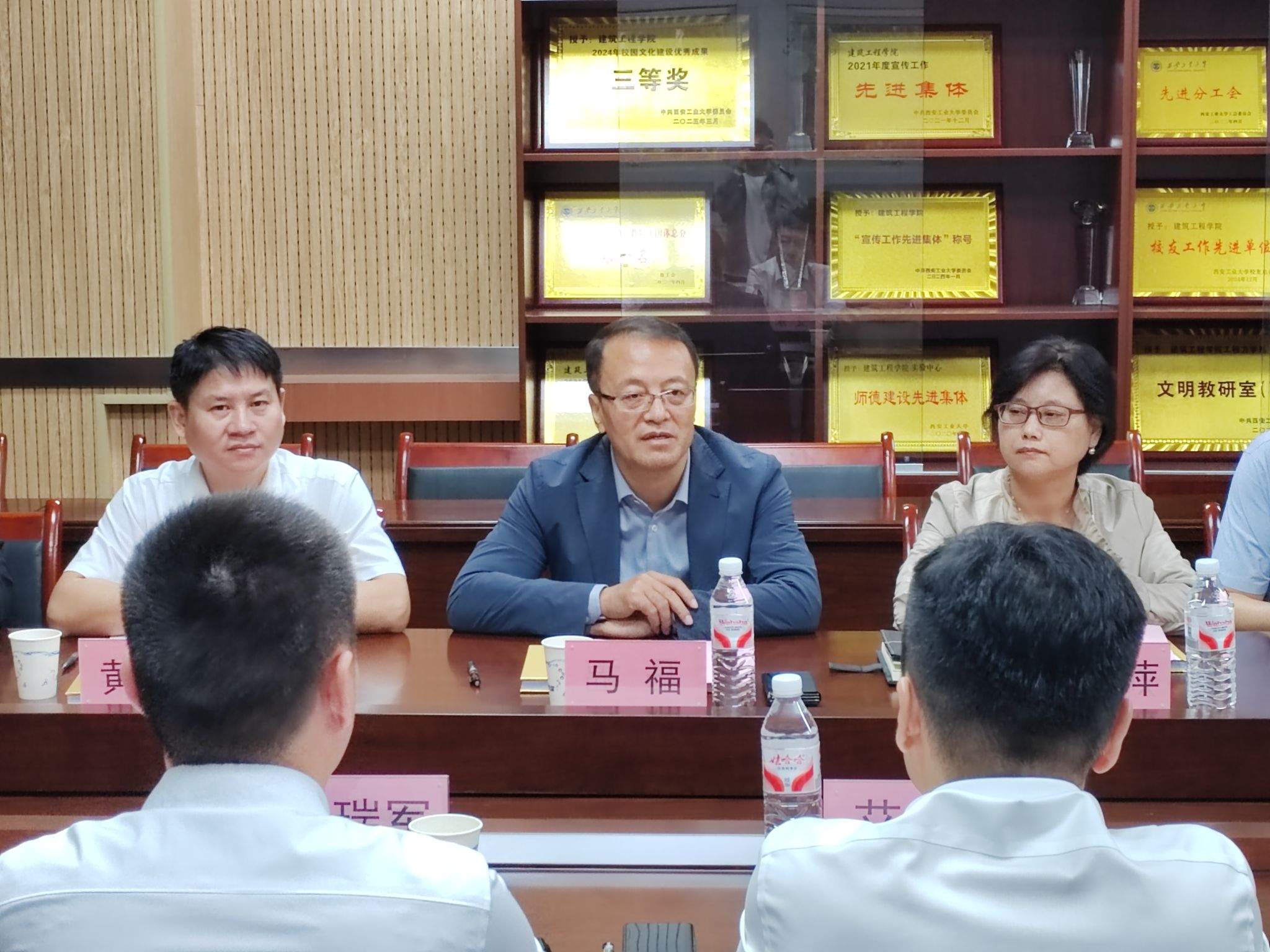 马福代表学校对中建一局三公司西北分公司一行到来表示热烈欢迎,并简要介绍学校办学历史、学科特色及人才培养成果。他表示,希望通过此次合作进一步推动产学研深度融合,实现校企资源共享、互利共赢。