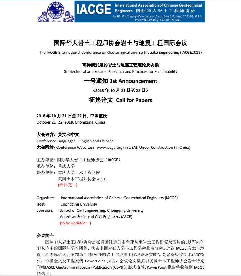 [学术会议]国际华人岩土工程师协会岩土与地震工程国际会议一号通知