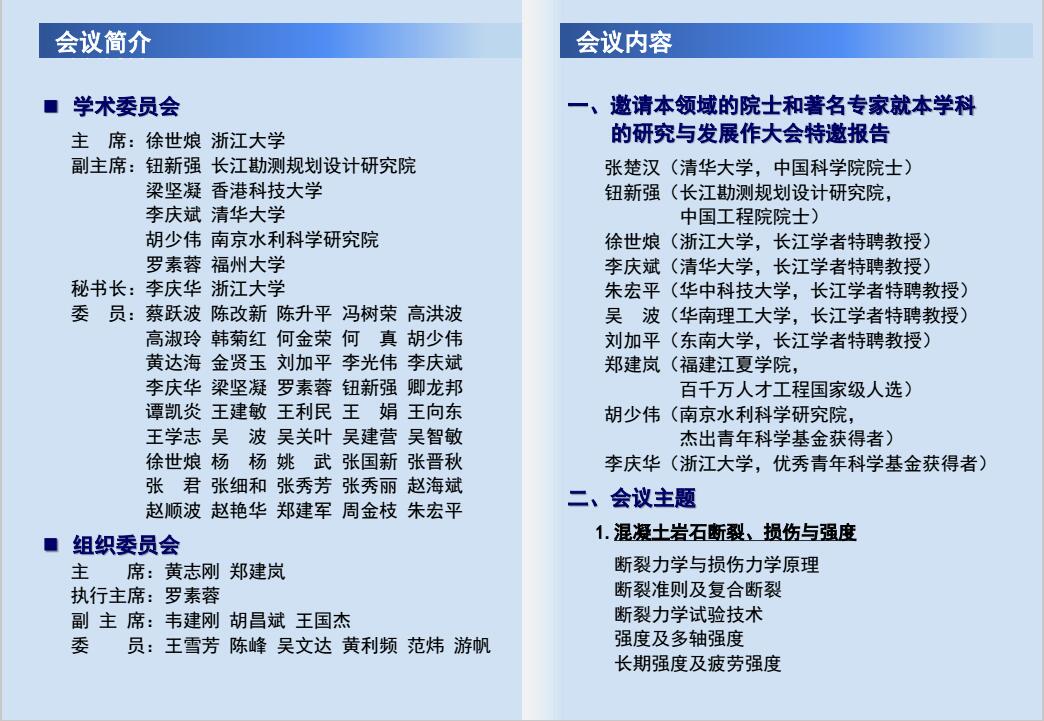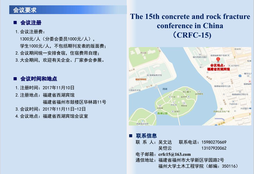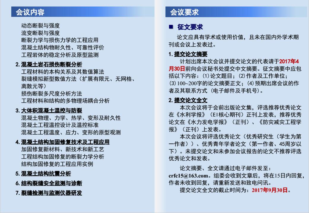[学术会议]全国第十五届混凝土岩石断裂 学术会议(第一轮通知)
