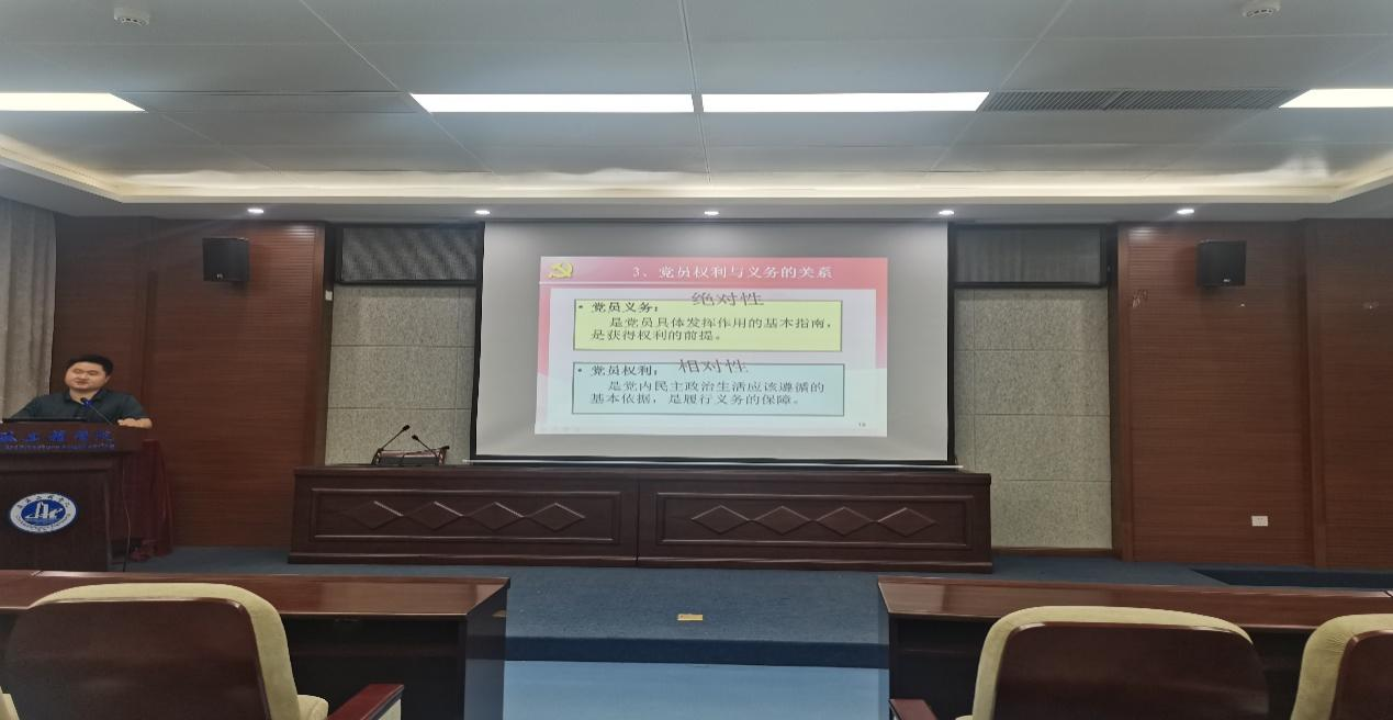授课中,何老师以“八条义务与八条权力“,详细的讲解了中国共产党每一名党员的权利和义务的具体内容。