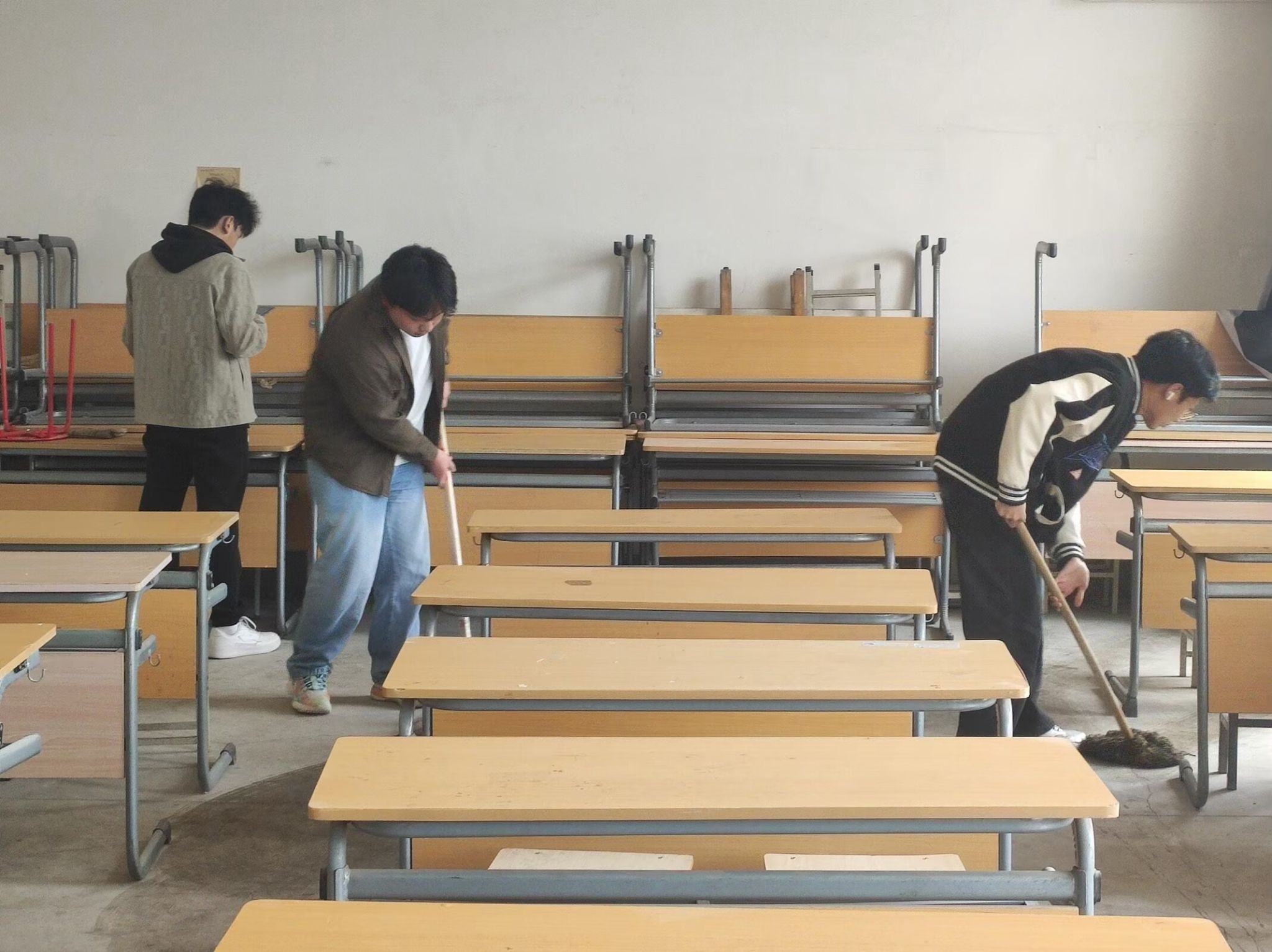 活动过程中,学生分工协作、有条不紊地投入清洁工作。有的拿起抹布仔细擦拭课桌、窗台的灰尘,有的挥动拖把对地面进行全面拖洗,还有的将课桌椅归置整齐、清理角落的杂物,大家以认真细致的态度完成每一项清洁任务,教4-413的环境在大家的努力下焕然一新。