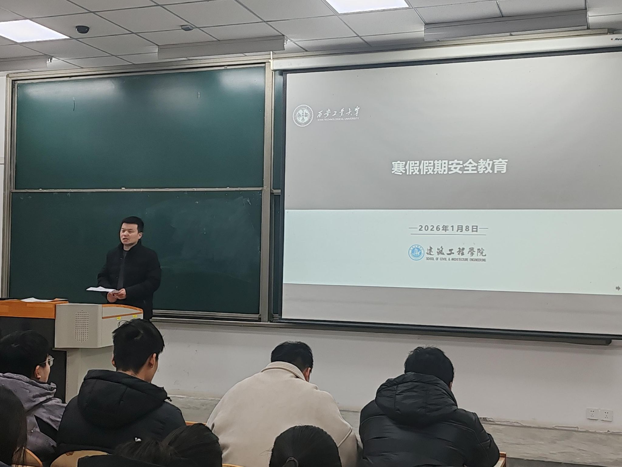 大会上,刘冬老师首先对本学期的教学工作、学生学业表现情况进行了简要总结,肯定了同学们在学习和实践中取得的进步。随后,围绕寒假假期安全教育,刘冬老师从交通安全、消防安全、网络安全、防诈骗安全等多个方面展开细致讲解,结合典型案例提醒同学们提高风险防范意识;同时对假期学习规划、社会实践及返校报到等事宜提出具体要求,叮嘱同学们合理安排假期时间,兼顾休息与学习,遵守学校各项规章制度。